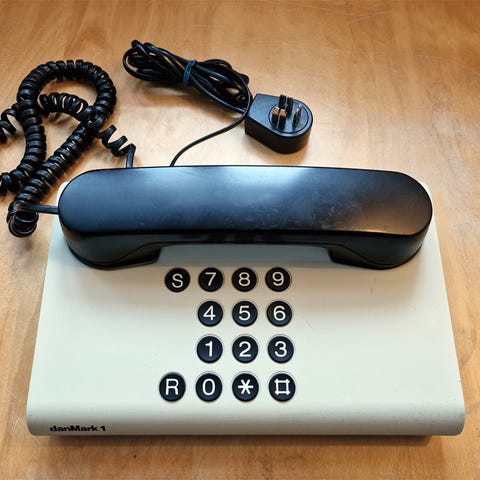 Fastnet telefon fra Comet basis i flot pastelgul farve. I god stand - telefonen virker.