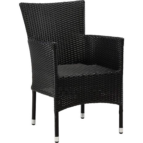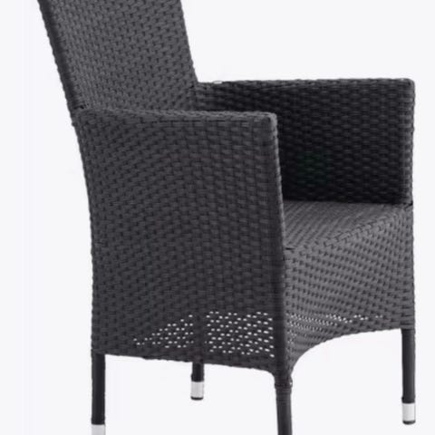 4 stk Højrygget havestol i sort polyrattan. Stolen har armlæn og et højt ryglæn, som giver god støtte til ryggen.