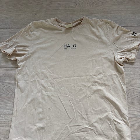 Halo langærmet T-shirt til herre i størrelse L. Trøjen er hvid og fremstillet i bomuld med rund hals og lange ærmer. Foran på brystet er der Halo-logo. Velegnet som hverdagstrøje eller som lag under anden beklædning.