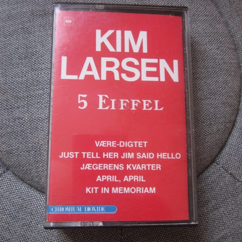 AI: Kim Larsen 5 Eiffel kassettebånd. Musikalbum udgivet på analogt lydmedie med kassette og originalt kassetteetui. Indlægsseddel med sangtekster og nummeroversigt til begge sider af båndet medfølger.