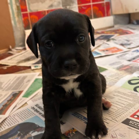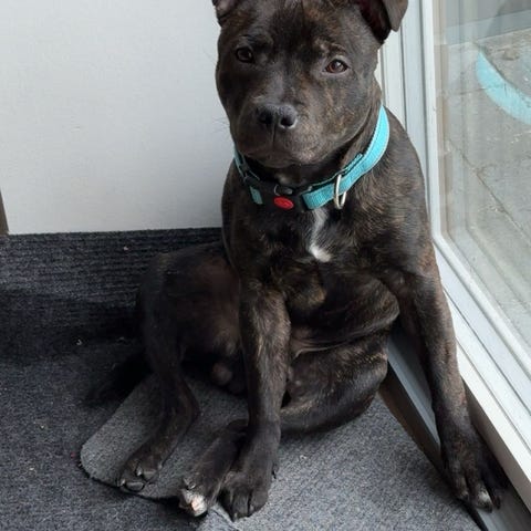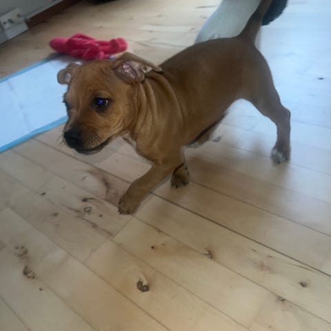 Hun er en Staffordshire Bull terrier. Hun bliver 2 til oktober, har lige fået vaccine og sundshedtjek. Har Stamtavle.