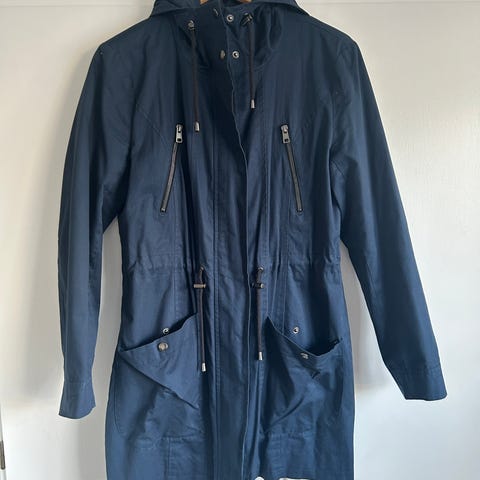 Frakken er i størrelse L og har knaplukning foran. Modellen har sidelommer med klap og justerbare stropper ved ærmerne. Foret indvendigt for øget komfort. Egnet som overgangsfrakke eller let overtøj i køligere vejr.