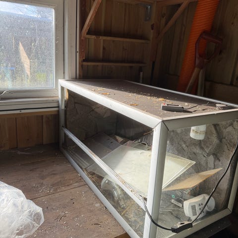 Sælger mit flotte terrarium. Det nok det flotteste og største terrarium i finder og er perfekt til hvis I gerne vil give jeres dyr det liv de fortjener der blevet lagt over 3000 i baggrunden som selv er lavet og blevet brugt meget tid på der følger også sten og træ med som er købt i plantorama for over 1000kr der følger også varme lampe med som næsten lige har fået ny pære og en dobbelt pærerlampe uden pære mad skål og vand skål følger også med samt andre små ting