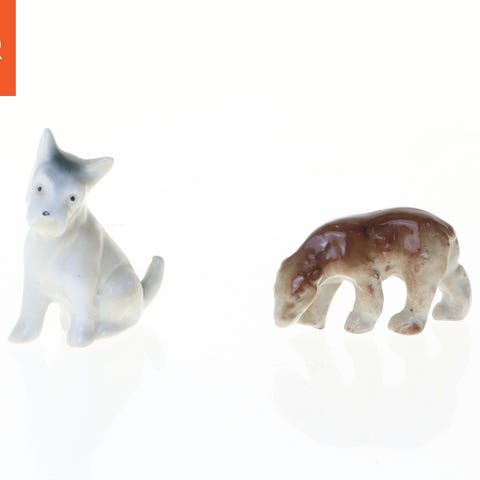 Porcelænsfigur med to børn og hund (str. 16 cm)