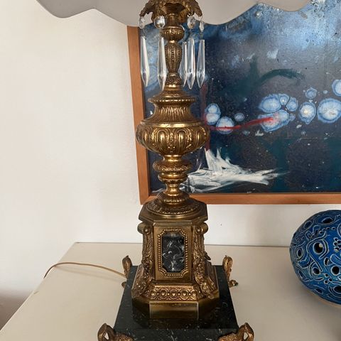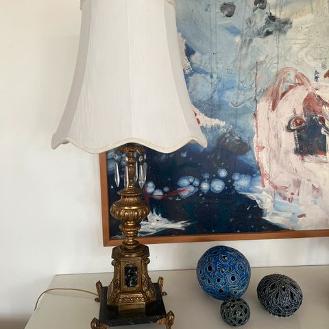 Bordlampe, Ved ikke , 30 år gl., Jeg har to gamle lamper der har stået på loftet ,jeg ved ikke hvor gamle de er, men jeg har ikke set nogen magen til de er 60cm høje med skærm og i dia. Ca 62