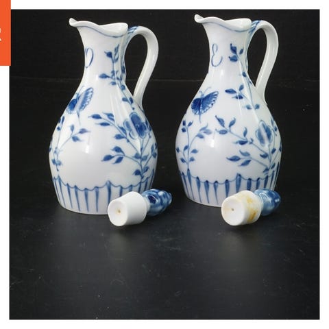 Tags: flaske, porcelæn, blåt, blomster, servering