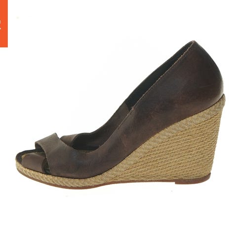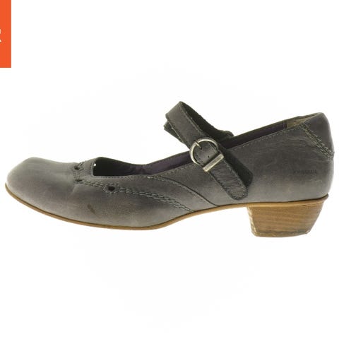 Dette er et par brune skindpumps med en solid hæl. Skoene har markerede syninger og en robust ydersål med slidmønster, som giver bedre greb. Der er synlige tegn på brug på ydersiden og hælene, men skoene er stadig funktionelle og attraktive til hverdagsbrug eller mere formelle anledninger. Størrelse 41.