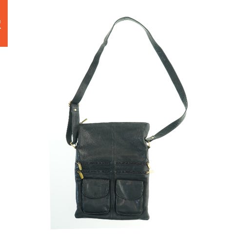 Skuldertaske i sort farve med justerbar rem. Tasken har en klap med magnetlukning og en baglomme med lynlås. Målene er 25x21 cm. Ideel til hverdag eller rejsebrug.