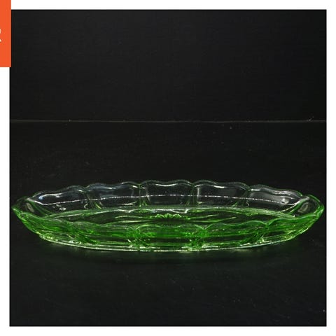 Grøn glasfade, tre sektioner (str. 21,5x22 cm)