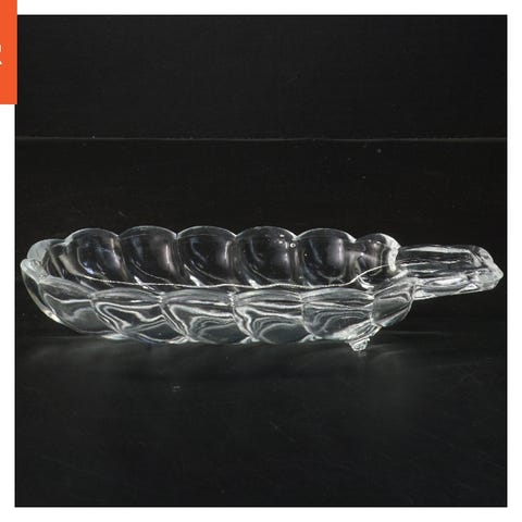 Dette er et dekorativt glasfad i en klar grøn farve. Fadet har en oval form med indgraveringer, der giver et elegant udseende. Det måler 27 cm i længden. Fadet kan bruges til servering eller som borddekoration.
