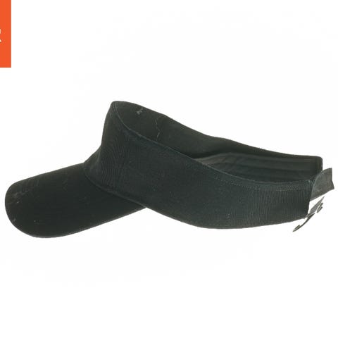 Objektet er en transparent solskærm lavet af plastmateriale med en lyserød nuance. Skærmen har en hvid kant forstærket med syninger og en elastik i lyserød til justering og komfortabel pasform. Størrelsen på skærmen er ca. 26 cm i bredden. Skærmen er designet til at beskytte ansigtet mod sollys og er velegnet til udendørs brug.