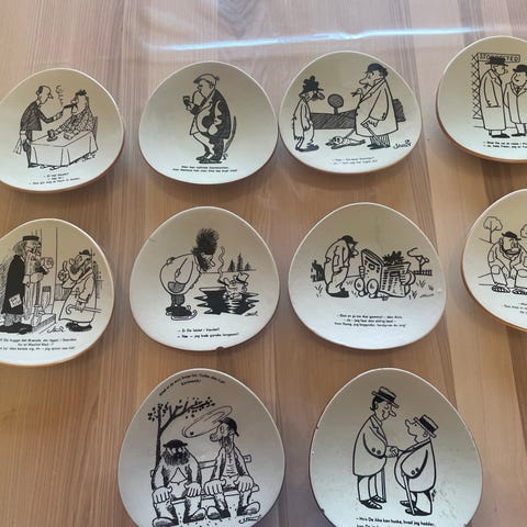 Tallerken med tegneseriefigurer fra Färg Form Sweden (str. Ø 21,5 cm)