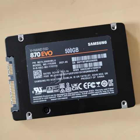 To Samsung 840 EVO Solid State Drives med en kapacitet på 250GB hver. De er velegnede til opgradering af en computer for hurtigere lagring og adgang til data. Begge drev viser tegn på brug, men er stadig funktionelle.