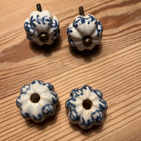 Sæt af farverige porcelæn greb (str. Ø. 3,5 cm)