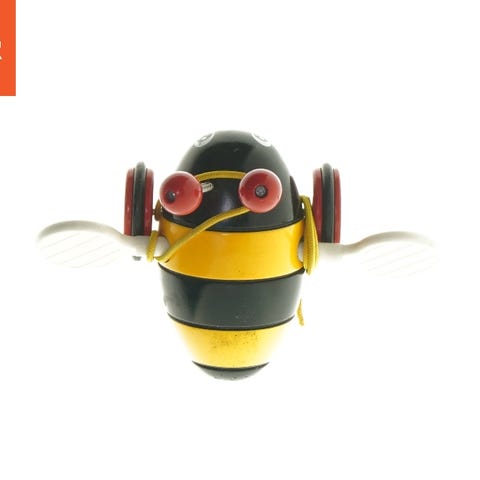 Objektet er en lille figur med en rund hoved og en fjederbaseret krop. Den har en diameter på cirka 7 cm og en højde på cirka 5 cm. Figuren står på to ben og har filt på undersiden af fødderne for stabilitet. Den er lavet af plast og har en lys grøn farve.