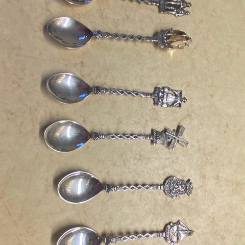 Samlingen består af syv souvenir teskeer og en gaffel. Skeernes skaft har indgraverede motiver fra forskellige byer og lande som Varde, Kjøbenhavn, Hobro, Grindsted, Norge og Toronto. Håndtagene har forskelligt udsmykkede design, herunder blomstermotiver og nationale flag. De er primært udført i metal med dekorative indlæg. Længden af hver ske er cirka 12 cm. 10 kr stykket