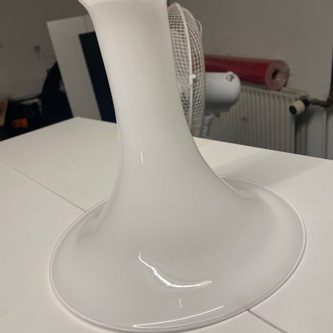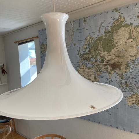 Mundblæst lampe fra Holmegaard i hvid glas.