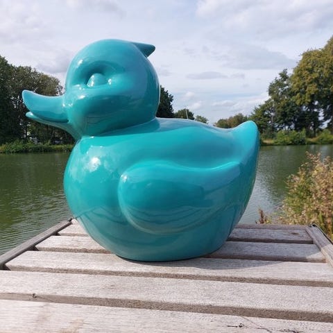 Stor hvid badeand i polyresin, oprindelse Europa, datointerval 2020+, mål 25 cm høj, 23 cm bred, 20 cm dyb. Klik på den blå "gå til varen" knap, for at købe eller byde på denne vare. Den samlede pris vil blive vist inden du afgiver dit bud.