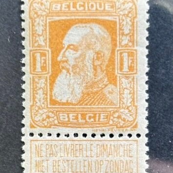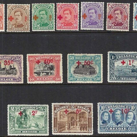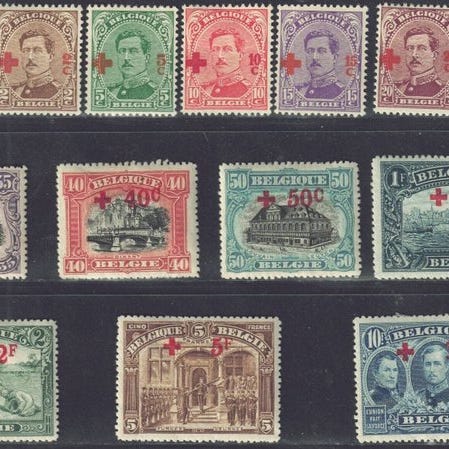België, fra 1918, postfris, katalog OBP/COB 155-Cu, Titel Uitgfite "Albert I opdruk Rode Kruis" - 20c+20c Lilla-brun med sort tryk. Klik på den blå "gå til varen" knap, for at købe eller byde på denne vare. Den samlede pris vil blive vist inden du afgiver dit bud.
