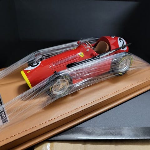 En utrolig flot model fra min personlige samling af Ferrari 375 F1, Autodromo di Modena 1950, prøver med Alberto Ascari, produceret for flere år siden af Tecnomodel. Modellen kompletteres af en dejlig resinfigur af Ascari, også i skala 1:18.