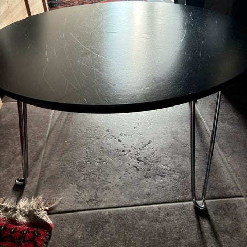 Sort sidder og hvid plade. Der er sort folie på pladen nu, som ikke er så pæn