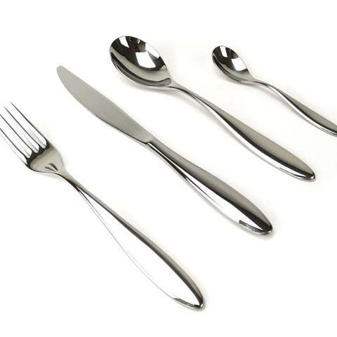 Interessant denne komplette og elegante opstilling til et bestik sæt foreslået af den franske fabrikant St.Joanis France til 4 personer i rustfrit stål støbt med et håndtag, der er stærkt perlemorbelagt i farven rosa magenta og fuldendt med en virole, som er prægede og stærkt sølvfarvet. Et elegant sæt der giver bordet en tone af prestige.