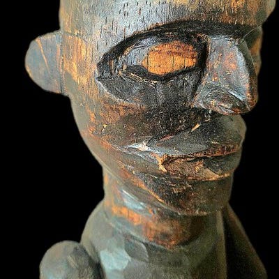 Denne cimiermaske Tiwara, oprindeligt fra Bambara-folket i Mali, er et ikonisk værk inden for kunst og spiritualitet hos denne vestafrikanske etnicitet. Skåret i træ med stor finesse, forestiller den normalt en stiliseret antilope, et symbol på frugtbarhed, landbrugsarbejde og harmoni med naturen. Bærer på toppen af hovedet under rituelle danse, følger Tiwaraen ceremonierne knyttet til landbrugscyklusserne, og videreformidler væsentlige værdier som disciplin, vidensformidling og respekt for jorden. De lange former, de rene linjer og de udskårne mønstre vidner om Bambara-håndværkernes dygtighed, såvel som deres evne til