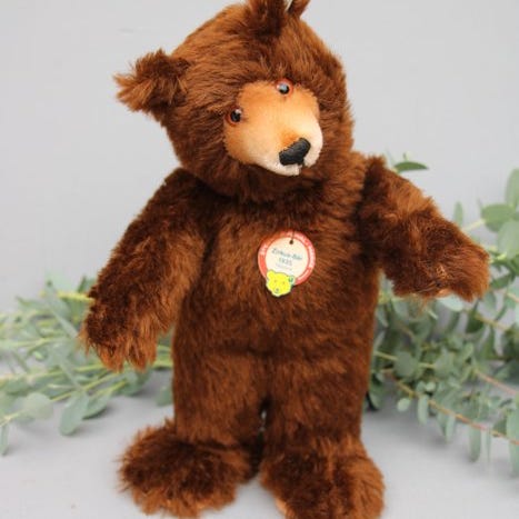 Stor samling af vintage fyldte dyr / plysdyr – ca. 40 stk. Omfattende samling af nostalgiske plysdyr fra forskellige årtier. Samlingen omfatter en bred variation af dyrearter og størrelser og er ideel for vintage legetøjs-samlere. Dyr inkluderet (blandt andre): Forskellige bamser i forskellige størrelser og brune nuancer (nogle med tøj som strikkede trøjer), bamser, aber/chimpanser, giraffer, en skildpadde, en tabby-kat, hunde, ræve, egern, kyllinger, et får og mere. Særlige kendetegn: Nogle stykker kan være fra kendte tyske producenter (Steiff, Schuco, Hermann osv.) – dette er ikke verificeret og gives uden garanti. En mere præcis identifikation af køberen anbefales. Tilstand: Alderssvarende brugt tilstand. Nogle