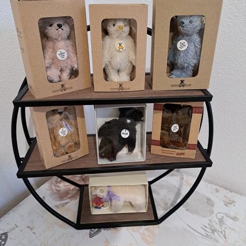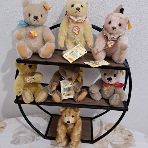 Steiff stor samling af teddybjørne og dyr fra Tyskland, ca. 40 vintage plysdyr i rimelig brugt stand, uden originalemballage. Klik på den blå "gå til varen" knap, for at købe eller byde på denne vare. Den samlede pris vil blive vist inden du afgiver dit bud.
