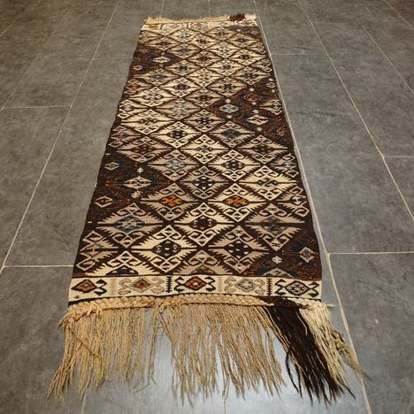 Håndvævet tyrkisk kilim tæppe, naturfarvet, uden farvestof, uld, nyt - Tæppe ...