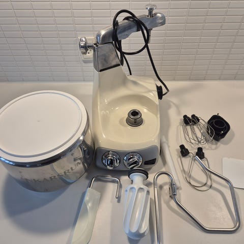 Kenwood køkkenmaskine tilbehørssæt. Sættet omfatter forskellige dele til brug med Kenwood køkkenmaskine, herunder piskeris, skåle/dæksler i plast, glasbeholder samt metalnøgler og mindre metaldele til montering eller justering af tilbehør. Velegnet som reservedele eller ekstraudstyr til kompatible Kenwood køkkenmaskiner.