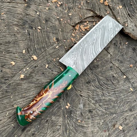 "Mini Kitchen Katana" er et mesterligt samarbejde mellem K. Romain og Japans fineste knivsmiderne. Denne lille, men kraftfulde kokkekniv er designet til præcision i skæring og alsidighed i køkkenet. Dets barberbladskarpe kant og afbalancerede vægt gør hurtigt arbejde med sarte urter, sprøde grøntsager og mere. Perfekt til detaljeret prep-arbejde, er "Mini Kitchen Katana" en pålidelig ledsager for kokke, der søger et responsivt, højtydende værktøj. En smuk blanding af Franco-japansk håndværk, ideel til at løfte køkkenets teknik.
