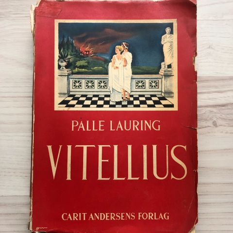 'Vitellius'., Palle Lauring., genre: roman, Udgivet af Carit Andersens Forlag, 1945. FØRSTEUDGAVE, 4. Oplag. 282 sider. Marmorerede indsatsblade. Trykt på ’krigspapir’. Indbundet i halvlæder, med rygtitel i guld.