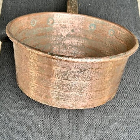 en traditionelt autentisk kobber sylteglas, ofte fransk fremstillet.