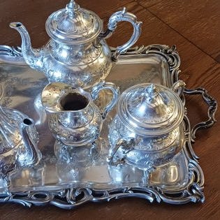 Et meget elegant og klassisk teservice til 6 personer, ideelt til et festligt kaffebord eller som samlerobjekt.