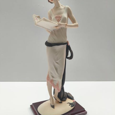 Denne skulptur forestiller en 'Dame med alano', et samlerobjekt lavet i 1987 af kunstneren Giuseppe Armani for Florence Sculture d'Arte.