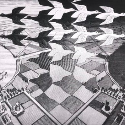 - M.C. Escher (1898-1972) var en hollandsk grafiker, kendt for sine indviklede værker inspireret af matematik. Hans arbejder har ofte motiveret umulige konstruktioner, udforskning af uendeligheden og optiske illusioner. Eschers tryk og tegninger udfordrer perception og perspektiv og gør ham til en unik skikkelse i kunstverdenen.