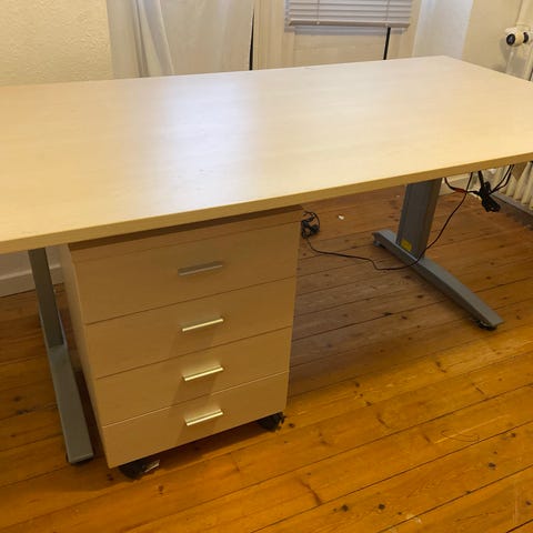 Kontorbord med kontorstol og underskuffer