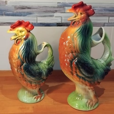 Saint Clément figuralt glaseret keramik i and-formet gryde, højde 32 cm, bredde 12 cm, dybde 22 cm, vægt 800 g, fra 1930–1940, Art Déco-stil med Bauhaus-undertil, polykrom glasur, fremstillet i Frankrig, meget velholdt med let aldersrelateret slid og uden sprækker eller reparationer. Klik på den blå "gå til varen" knap, for at købe eller byde på denne vare. Den samlede pris vil blive vist inden du afgiver dit bud.