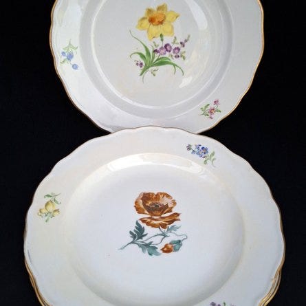 Set af fire porcelænsprinkeller fra Tyskland, herunder Meissen, Hutschenreuther og Schwarzenhammer, dekoreret med blomster og Fragonard-scener, fra 1950'erne til 1970'erne, i god stand. Klik på den blå "gå til varen" knap, for at købe eller byde på denne vare. Den samlede pris vil blive vist inden du afgiver dit bud.