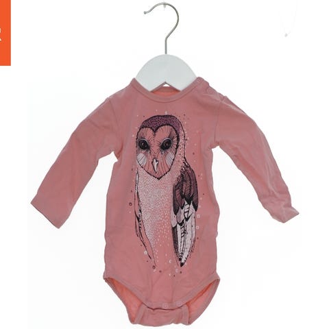 Langærmet bodystocking i rosa med et stort kaninprint på forsiden. Den har knapper ved skulderen og forneden til nem påklædning.