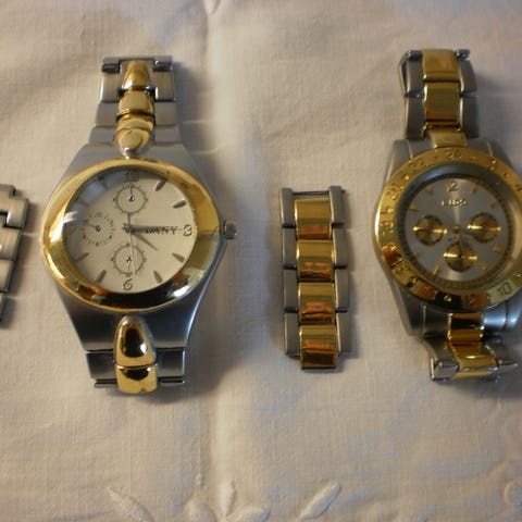 Herreur, andet mærke, Hermances, Geneve. Chronograph. Herrearmbåndsur fra Hermances. Model G104-10. Urkasse og integreret lænke i børstet 18 kt. guld plated rustfrit stål. Hvid sølvtonet style urskive med datovisning ved 4 position. 3 subdials, separat stor sekundviser. Stopursfunktion, chronograffunktion. Urkasse 45 mm. Riflet krone. Ridsefast glas. Fast topring med time indeks. Vandtæt 50 m. Box og manual medfølger. Kun brugt få gange. Netpris kr. 3.650