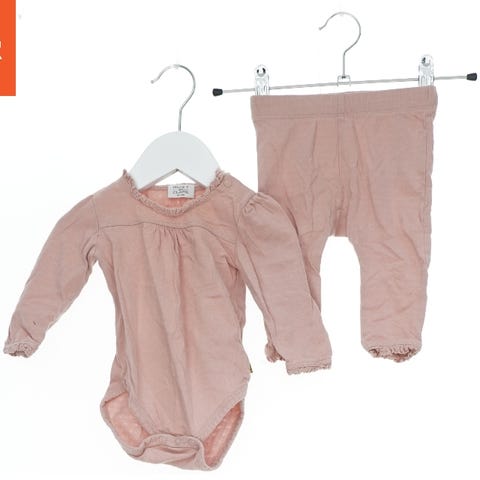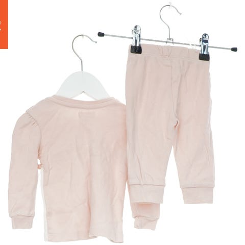 Dette børnesæt består af en lyserød hættetrøje og matchende bukser. Hættetrøjen har en lynlås foran og en hætte samt elastisk ved håndleddene. Bukserne har elastik i taljen og ved anklerne for komfort. Størrelsen på sættet er 24M, som passer til børn på cirka 24 måneder.