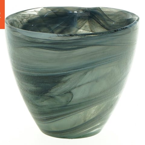 Dette er en glasvase med en højde på 22,5 cm. Vasen har et unikt mønster med fine linjer, der skaber et dekorativt udseende. Primærfarven er blå med subtile nuancer, og den har en glat, skinnende overflade. Vasen er beregnet til dekoration og kan holde blomster eller grene. Den runde åbning gør det nemt at arrangere indholdet, og vasens solide form sikrer stabilitet på overflader.