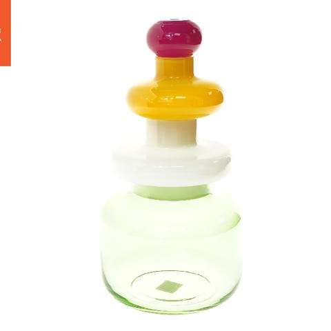 Vasen 'Flower Tower' fra Ponpon er designet af Helene Tiedeman og har en farverig og unik form. Den er sammensat af farverige sektioner med grøn, hvid, gul og rød/orange nuancer. Materialet er glas, og den måler 33 cm i højden. Vasen kommer i original emballage, der også beskriver produktets historie og designfilosofi. Den er velegnet til at tilføje et dekorativt touch til ethvert rum.