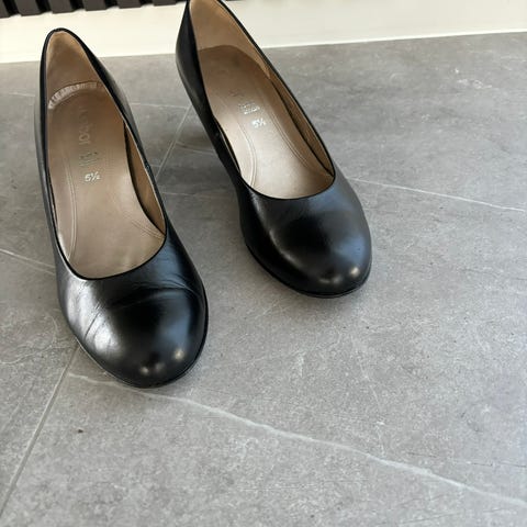 Disse sko er sorte damepumps med en peep-toe design og en lav hæl. Skoene er som nye og er fremstillet af læder med en dekorativ samling ved tåen og har en komfortabel indersål. Størrelsen er 40,5 og de kommer i en original Gabor skoæske.