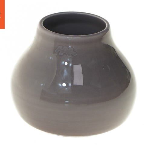 En ovalformet vase lavet af glas med en blank, sort overflade. Vasen har en højde på 22,5 cm og er designet til dekorative formål eller til brug med blomsterarrangementer.