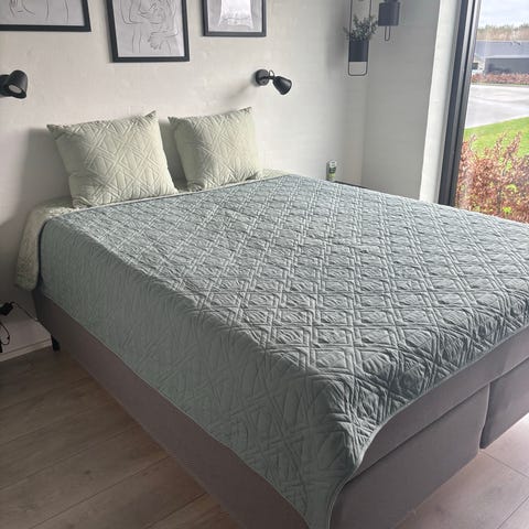 Har været foldet godt sammen og gemt væk, kun lige lagt på for billedet. Når det er i brug har det ikke krøller som sådan.