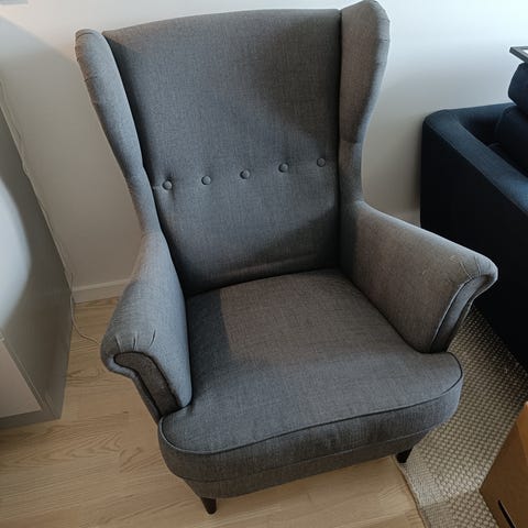 Sælger denne meget pæne og velholdte lænestol med dreje og vippefunktion. Modellen hedder Äleby, og sælges ikke længere i DK. Men her er et link til annoncen i Sverige, hvor den åbenbart stadig sælges. Købt omkring 2023/2024. Meget pæn og velholdt - fejler ingenting. Men jeg har ikke plads til den.