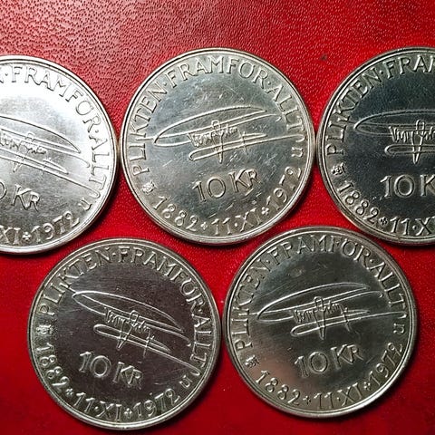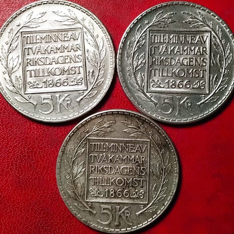 SVERIGE SWEDEN SØLV 6 x 5 KR KRONOR / KRONE 1954 + 5 x 1955 108g .400Ag 5 Kronor 1954 - 1971 Gustaf VI Adolf (.400 silver) • 18 g • ø 34 mm KM# 829